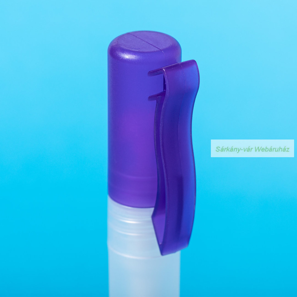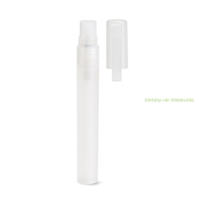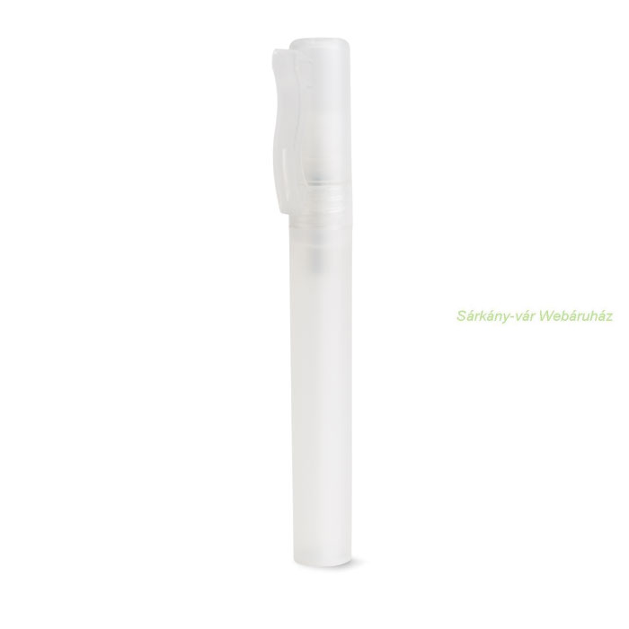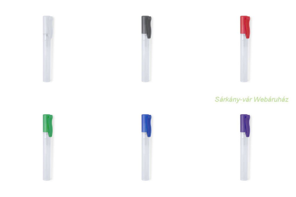 Áttetsző test és kupak, többféle színben kapható, állítható klipszel. 65%-os alkoholtartalmú oldat.
