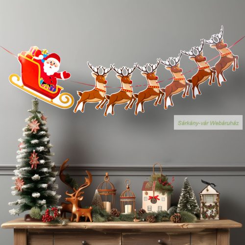 Karácsonyi papír girland, Mikulás szán - 3,5 m