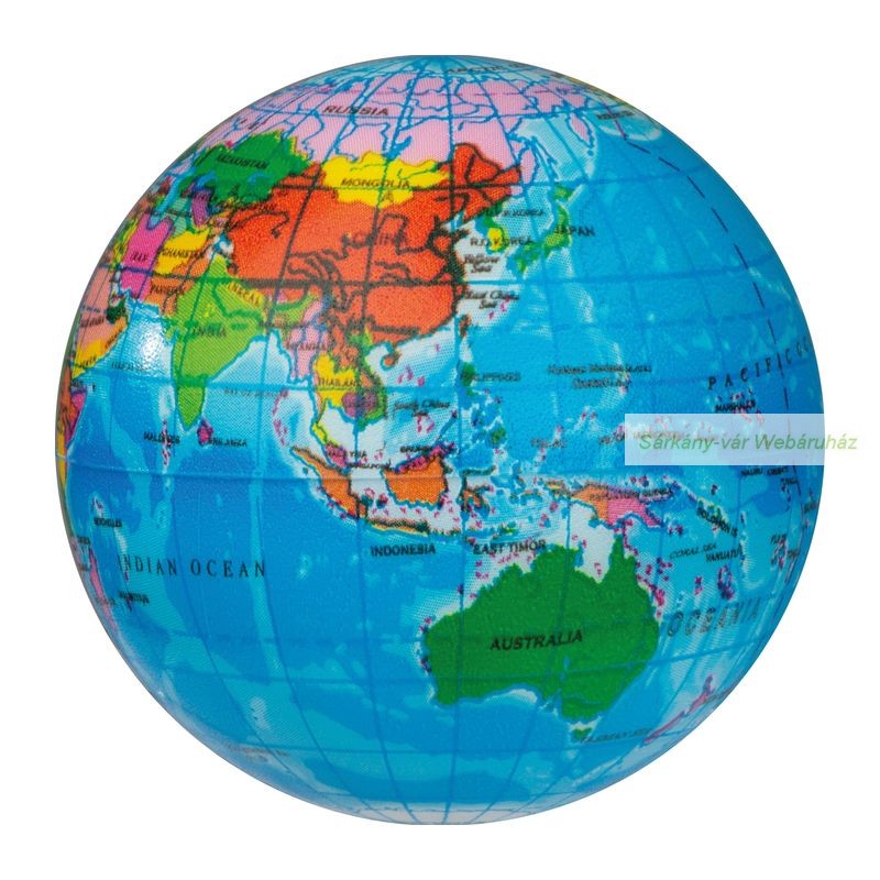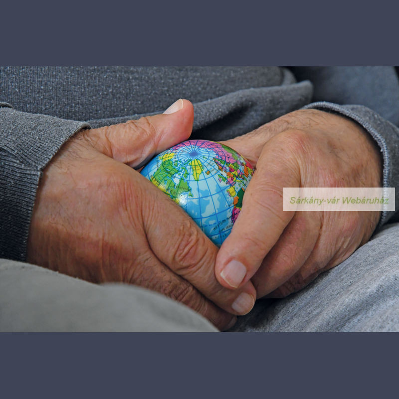Földgömb mintájú, stresszlevezető labda, amely tökéletesen enyhíti a stresszt és jót tesz az ujjizmoknak is