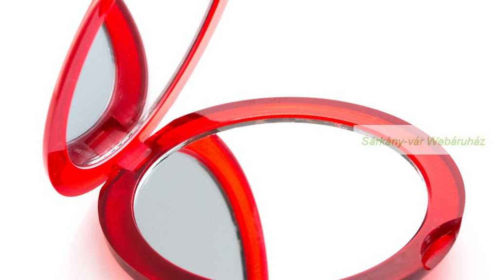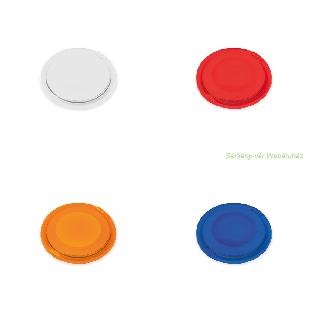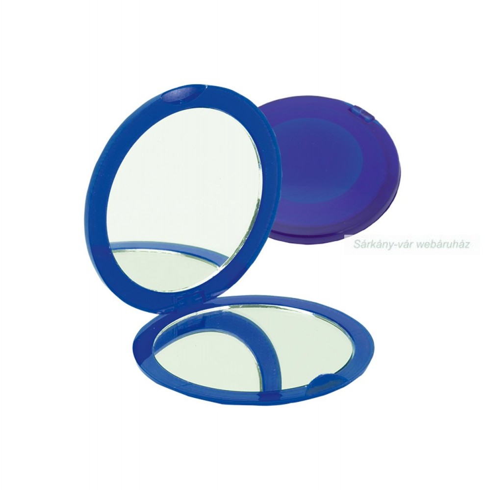 Összecsukható műanyag zsebtükör élénk áttetsző színek széles választékában, két belső tükörrel, 1x/2x nagyítással