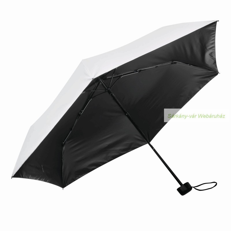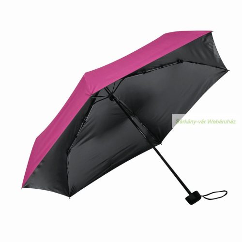 SUNDANCE összecsukható esernyő, UV védelemmel, hozzáillő színű tokkal: 3 részes fém nyél, fém/üvegszálas bordákkal, fekete műanyag fogantyú csuklópánttal, poliészter selyem ernyő UV50+ védelemmel, belül fekete bevonattal, széles tépőzárral